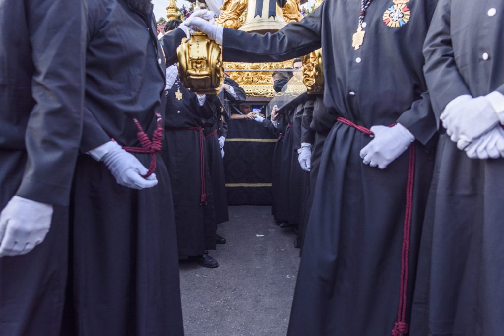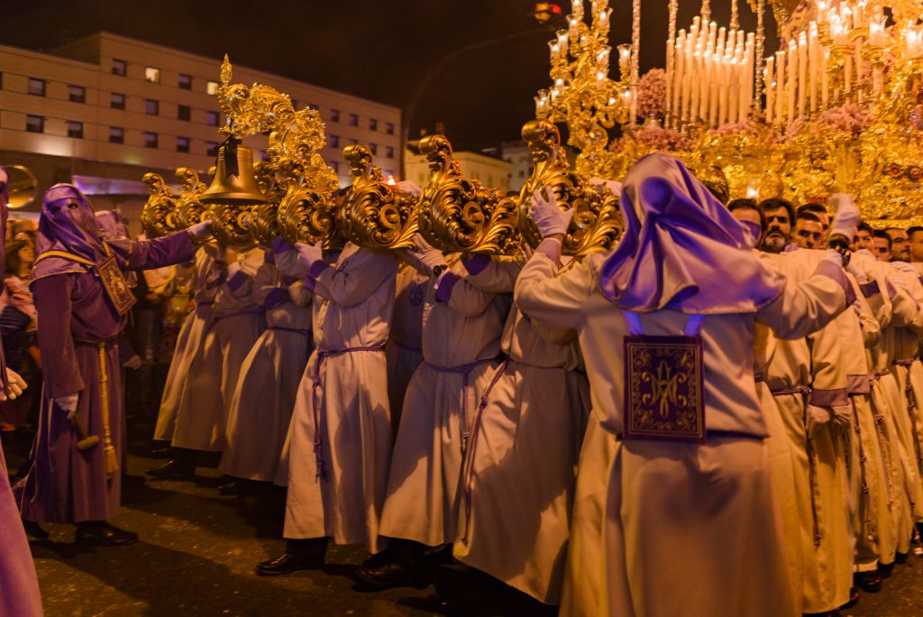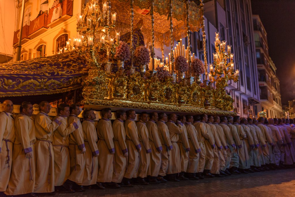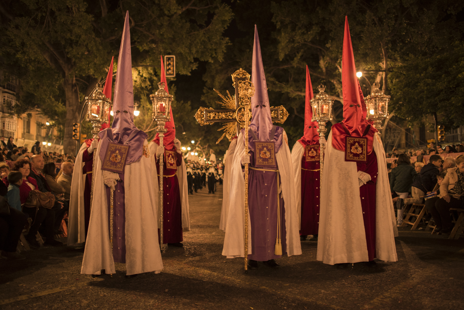 Holy Week in Málaga, is the annual commemoration of the Passion of Jesus Christ that takes place during the week before Easter. It is the main cultural and religious event of Málaga. During it brotherhoods of thousands faithful make processions through the streets showing heavy weight wooden sculptures narrating scenes of the Passion of Christ, or images of the Virgin Mary showing sorrow. A characteristic is usage of the “nazareno” for some of the participants. This garment consists in a tunic, capirote (a hood with conical tip) used to conceal the face of the wearer, and sometimes a cloak.