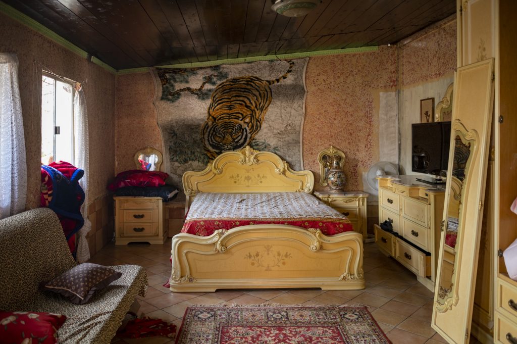 02/26/2021 Rome, Italy. Interior of a camp house. Many of the inhabitants work in devaluation cellars therefore often the furnishings of containers are very heterogeneous.