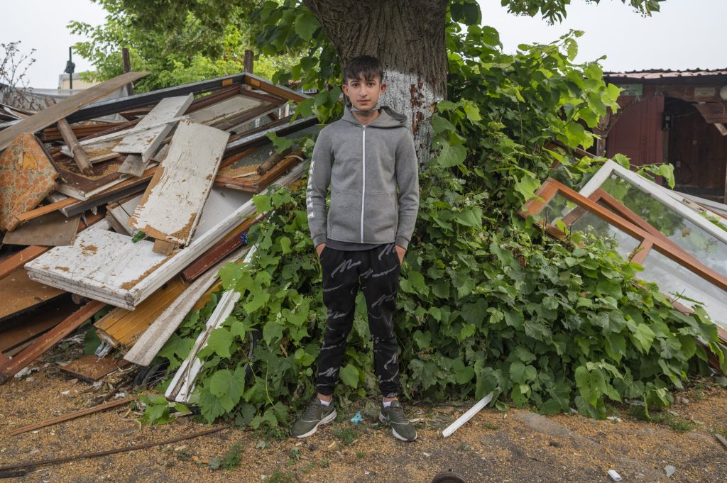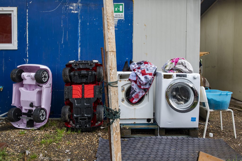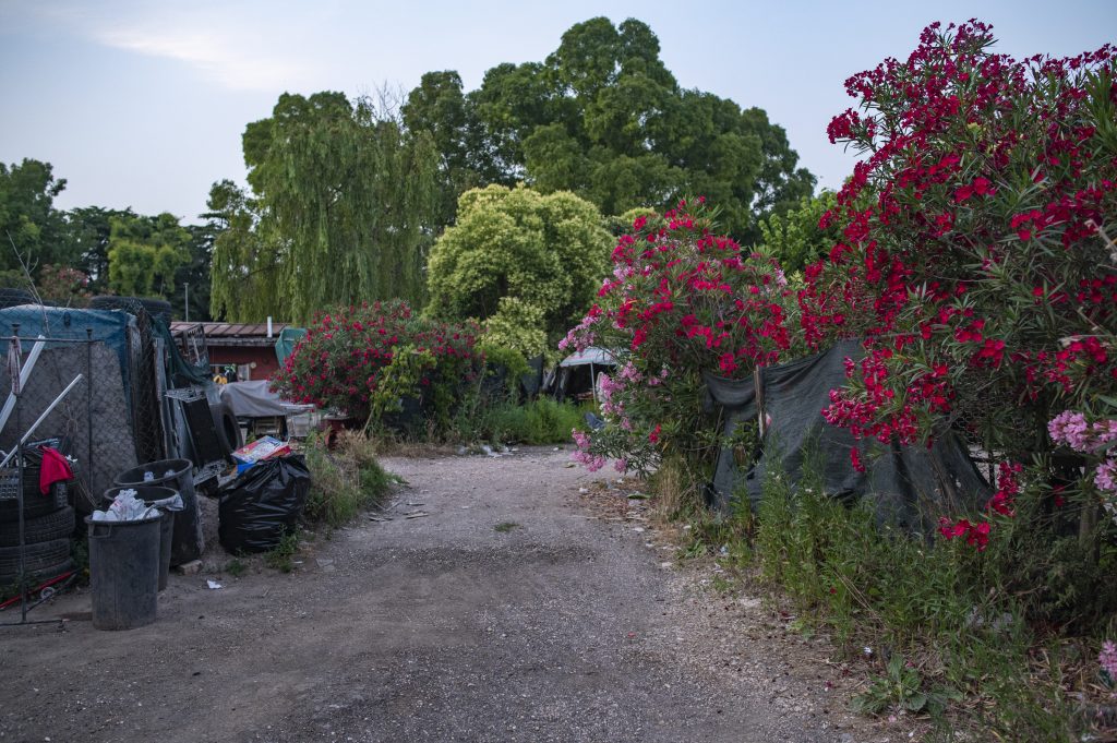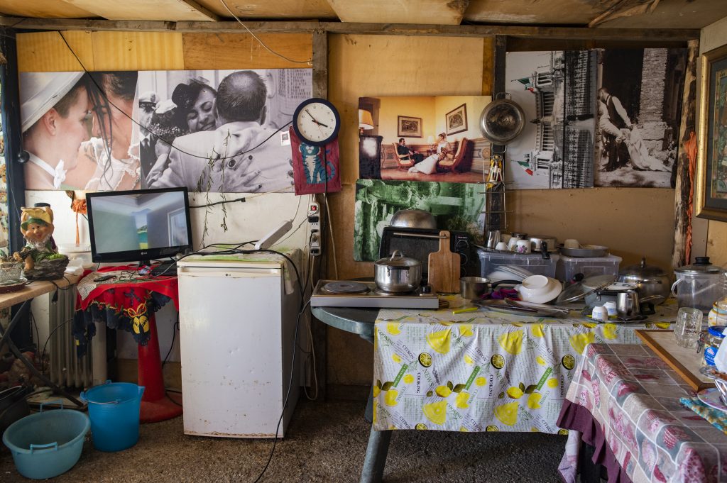 06/27/2021 Rome. This is the first house built in the camp more than 30 years ago, before the municipality officially made the settlement. The house is heated by a wood stove built by Vehbija.