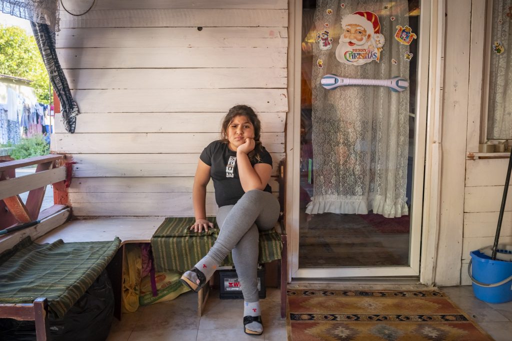 05/27/2021 Rome, Italy. Ginevra poses outside her wooden house. Most of the house were built before the city hall gave them containers. Posed portrait.