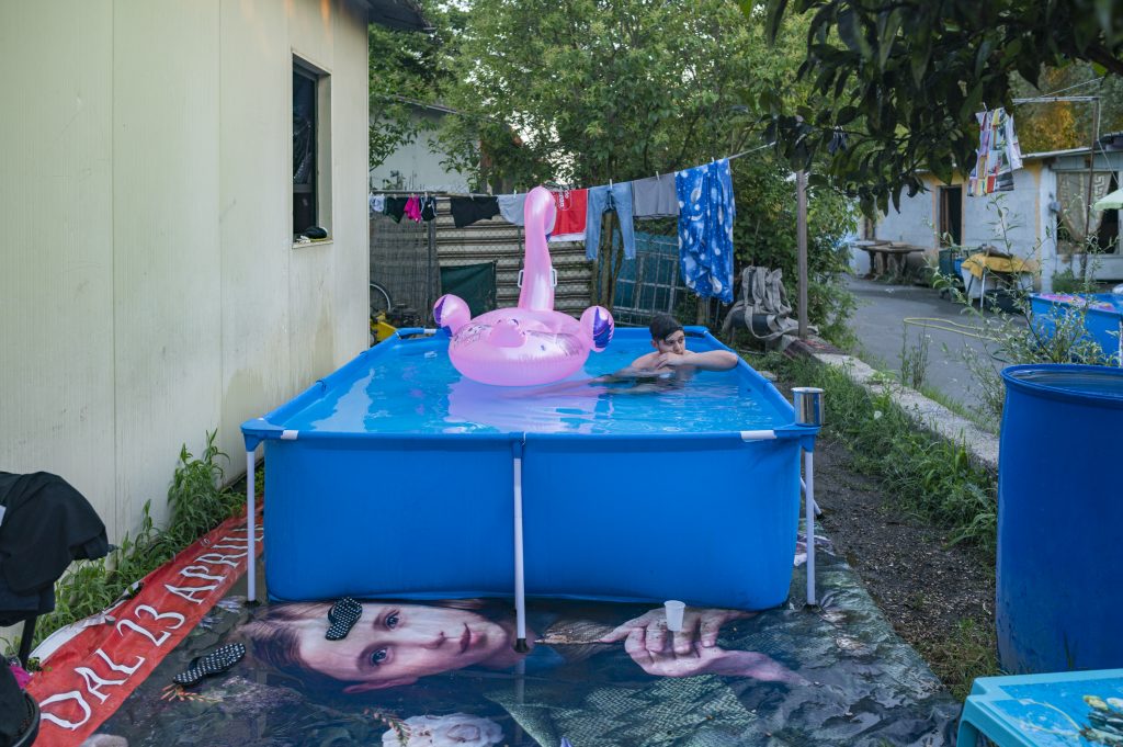 07/20/2021 Rome, Italy. To overcome the great summer heat, the residents of the camp have equipped one swimming pool behind a container.