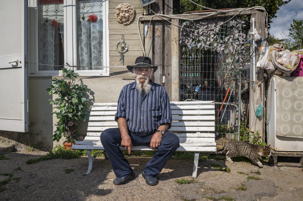 04/23/2021 Rome, Italy. Vehbija came to Italy 50 years ago and, together with his wife Duda, is one of the founders of this field. With 10 children, 50 grandchildren and 150 great-grandchildren the majority of the inhabitants are their descendants or relatives. Posed portrait.