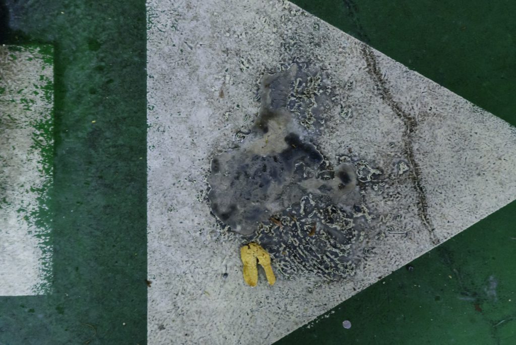 The term becoming in philosophy implies a change not only in space but also in time. Everything is subject to time and transformation. To appear out of nothing and to disappear into nothingness causes a constant sense of anguish in modern man. Man must understand that nothing is really, but that everything is in the state of becoming and of change. Nothing stands still. Everything is born, grows and dies. This photographic project searches for traces of this human becoming in the folds and cracks in the asphalt, in the encrustations in the walls, in the stains left by the passage of man and by the passage of time.